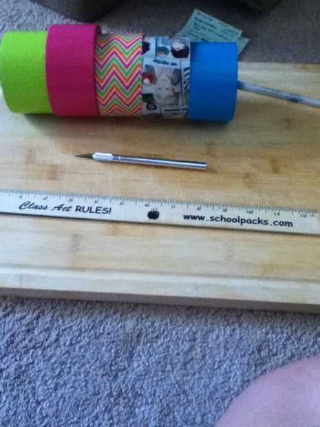Todo lo que se necesita para este proyecto es un pedazo de cartón (cartulina), su cinta favorita conducto diseñado y algún hilo de bordado.Paso 1: montaje 5 pasos sencillos1. cortar conglomerado 1 1/4 pulgadas de x 6 pulgadas.2. sándwich aglomerado e