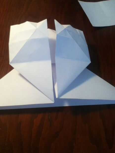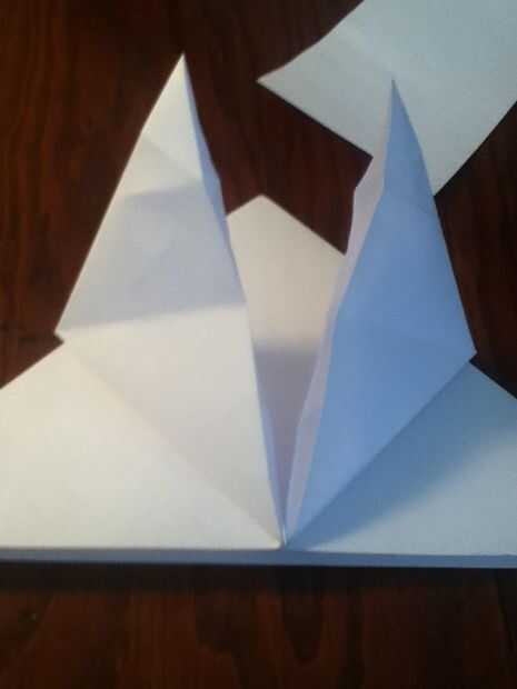 Doblar las esquinas inferiores de la primera capa hasta el punto superior y desdoblar. Agarra la mitad superior de la primera capa y elevación para el punto superior. Tomar las esquinas inferiores y doblar en la parte superior central. Doblar la primera capa hacia abajo.