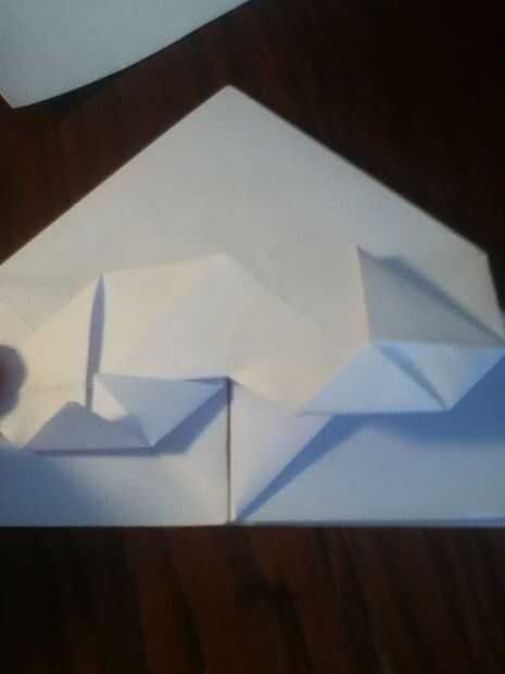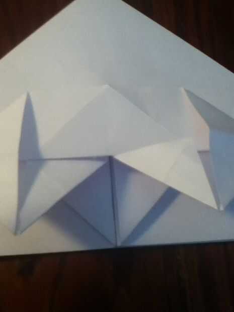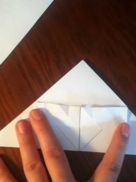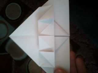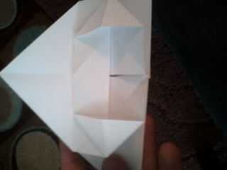 Doble el borde inferior de la primera capa hasta el pliegue en la parte superior de los pliegues diagonales. Plegar las esquinas superiores izquierdas y derecha, del mismo modo que hiciste para hacer la Plaza. Abrir la parte superior y squash dobla las esquinas. Que tenga que mirar el cuadro para el siguiente paso. Doblar las esquinas medianas, hacer puntos en la parte inferior. Doblar los puntos de fondo y luego doblar toda la capa superior hacia arriba.