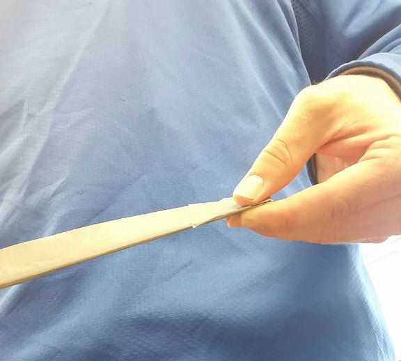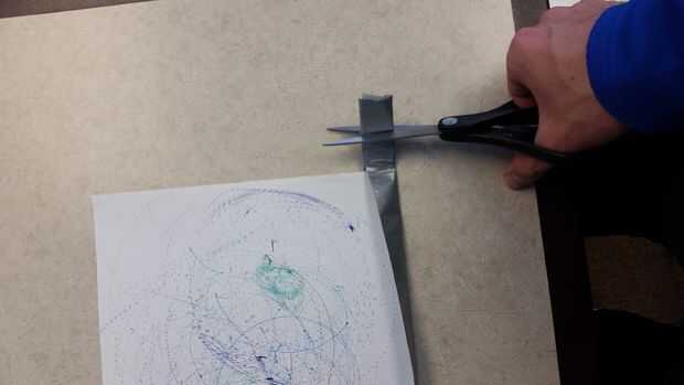 • Coloque la pieza doblada de la cinta en su cuadro y corte cualquier exceso cinta con unas tijeras.