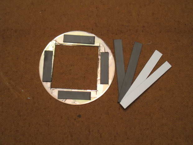 Muy bien el trabajo duro está hecho. Ahora lo siguiente que necesita hacer es colocar los imanes en el interior del disco. He utilizado la cáscara y palillo magnético cintas que compré en la sección de arte en Wal-Mart., asegúrese de colocar los imanes en el lado del disco que usted don' quiere mostrar. Para asegurarse de que la línea de imanes para arriba con uno a primera adjunto un conjunto de imanes en el interior del disco que grabé. Luego colocar el segundo conjunto de imanes en la parte superior el primero con el lado adhesivo hacia fuera. Ahora sólo tiene que colocar el segundo disco en la cima de los imanes. Como con el primer disco, asegúrese de que colocar los imanes en el lado del disco no quieren mostrar.