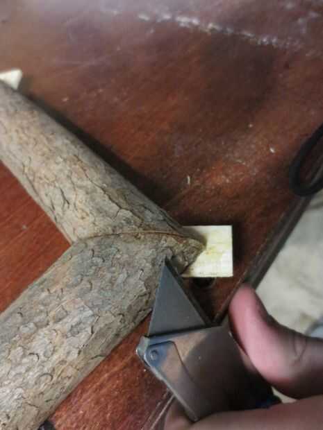 Cuando el pegamento se seca recortarlo hasta la corteza.
