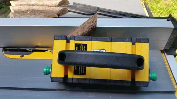 Esta es una de las operaciones que quieres tom Asegúrese de que está empujando la pieza a través con un 'palo de pollo' u otra pieza de equipo de seguridad que mantendrá los dedos un poco más lejos de la lámina.