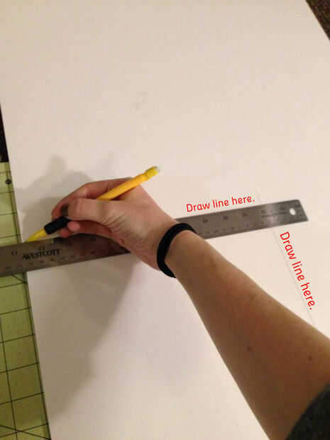 3. Coloque la regla en el tablero de cartón pluma y use el lápiz para trazar ligeramente el rectángulo más grande, en mi rectángulo caso los 11 "x 13". El movimiento de tres pulgadas en por todos lados y trace un rectángulo más pequeño, en mi rectángulo caso 5 "x 7".