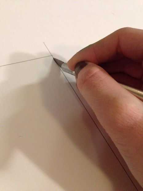 • Ir lentamente para asegurar que se mantenga a lo largo de la línea de lápiz. Probablemente deberás ejecutar el cuchillo a lo largo de la línea varias veces para cortar a través el cartón pluma.