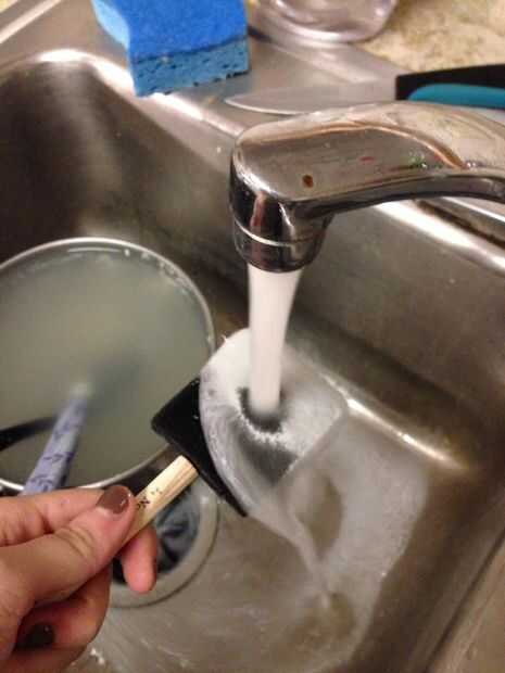 - Si alguna vez desea volver a utilizar este cepillo, lave tan pronto como haya terminado con él. Simplemente mantenerlo bajo agua corriente tibia, apretando de vez en cuando y luego se ponen sobre papel absorbente para secar cuando el agua salga limpia. Si desea que estos pinceles para un solo uso, omita este paso y deseche el cepillo.