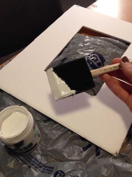 Punta: Es tentador omitir este paso e ir directamente a la pintura, pero es importante prime primero. Cartón pluma tiene una tendencia a la deformación cuando se moja. Con la pintura y el pegamento que utilizaremos más adelante, el marco puede deformar hacia adentro y entonces no mentira plano, que no sólo se verá mal, pero también hará difícil colocar las tazas solas. Si vas a pintar el cartón pluma, deberá cebarla primero.