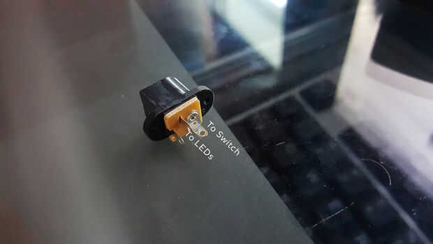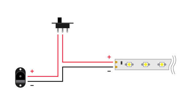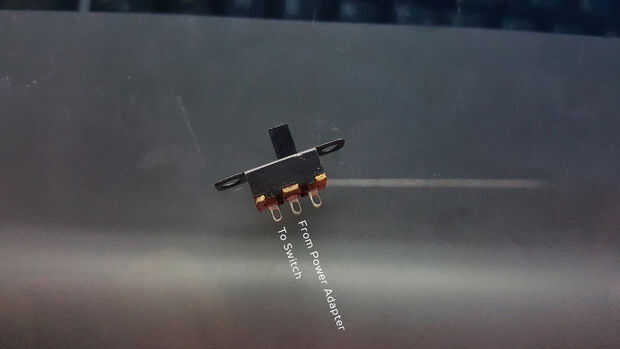 Para alimentar los LEDs, que vamos a utilizar el circuito de interruptor simple en el diagrama. Comenzando con el adaptador de corriente, soldar un cable para el positivo y otro para el plomo negativo y la cubierta de que tubería de encogimiento de las conexiones con el calor. Luego, otro trozo del tubería del encogimiento del calor y colocarlo sobre el cable positivo. Suelde el cable positivo desde el adaptador de corriente para el cable del centro del interruptor y la conexión de la cubierta. Por último, soldar otro cable para cualquiera de los otros 2 cables y otra vez, tapa la conexión.