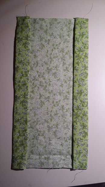 Doblar los bordes laterales una vez más. Hacer 1 1/4 pulgada márgenes. Una vez más, asegúrese de que tener el ancho exacto. Desdoblar los pliegues anteriores de 1 pulgada. Estos pliegues de segunda deben papel en los pliegues anteriores como se muestra arriba, escondiendo los extremos sueltos de la tela.