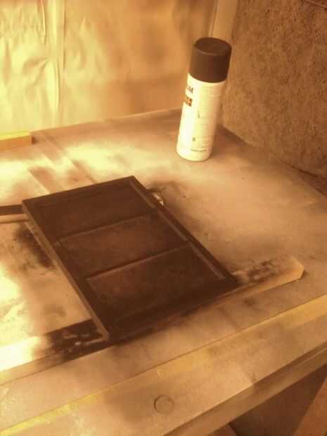 Los bordes ásperos de la arena y luego pinte el marco con pintura en aerosol. Una vez que la pintura se haya secado puede pegar las baldosas en su lugar.