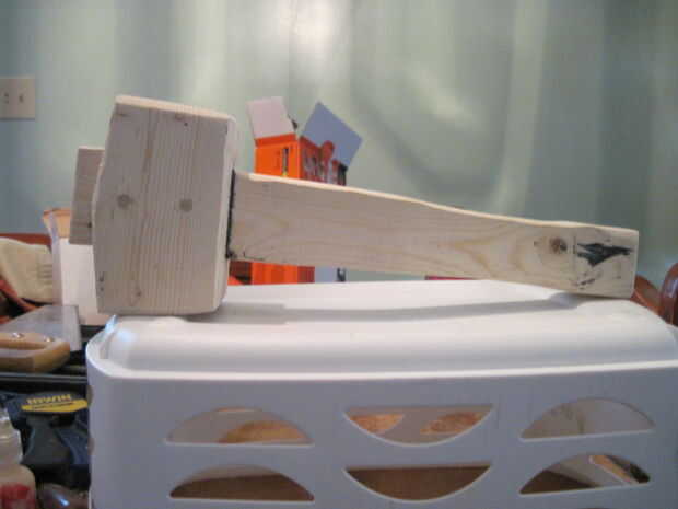 esto es una gran idea para hacer un martillo de madera que sería muy eficaces en combate. Tiene una cabeza robusta, una espalda fuerte para un ataque stab y espigas en los dos extremos del asa.Paso 1: materiales Necesita cinta gorila, una clavija de