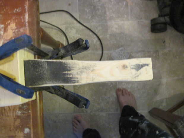 Después de que el pegamento ha tenido oportunidad de secar el momento de forma de la empuñadura. Envuelva su mano alrededor de la manija como vas a hacer pivotar el martillo y luego marque un espacio apenas más grande y luego la mano curva en de ambos lados. Utilicé el papel de escofina y de la arena con el fin de esta parte de la forma, pero una sierra de banda o sierra habilidad probablemente trabajaría demasiado. Después de que el mango tiene la forma de seguir adelante y la cosa entera para conseguirlo liso, o en este caso para quitar la pintura negra de la arena.