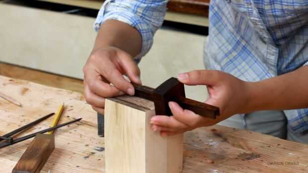 Qué tengo que hacer primero es marca que la parte superior y la inferior con la mortaja de calibre para obtener estas líneas de centro, que serán también el grueso de mi mango. Tan marcado todo en la parte superior y en el centro en la parte inferior.