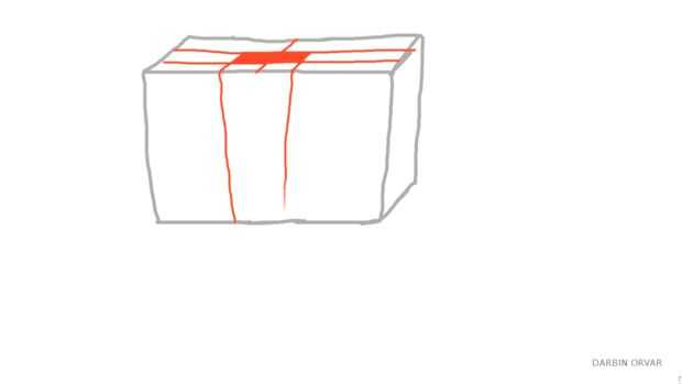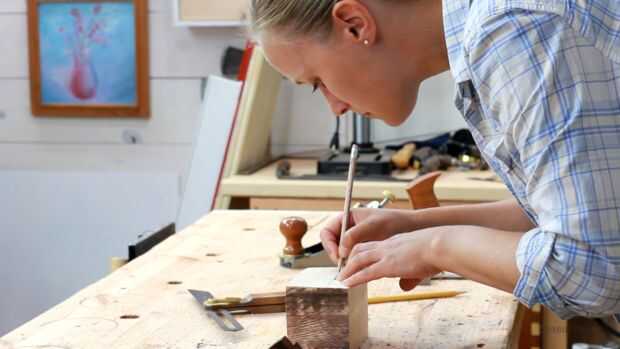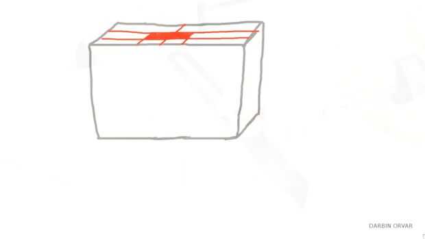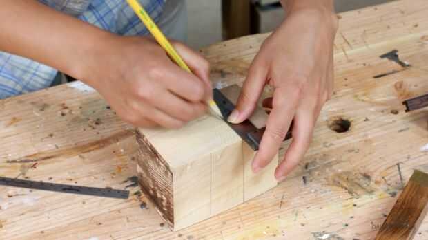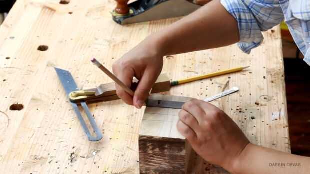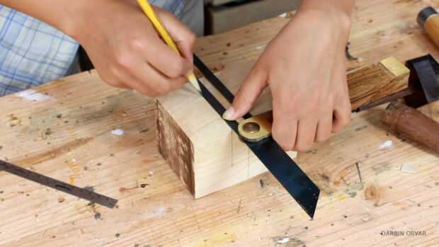 Luego tomar la Plaza ingeniería y derribar las líneas hacia el lado de la marca para escoplear. Y la parte inferior marcada así. Así que aquí tenemos la pieza marcada hacia fuera desde la parte superior hacia los lados en la parte inferior.