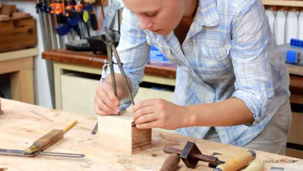 En este punto marcan el ancho de la manija del centro. Mi mango será 1 1/2 pulgadas, así que mida 3/4 de pulgada en cada lado y trazar líneas de la marca para escoplear al borde.