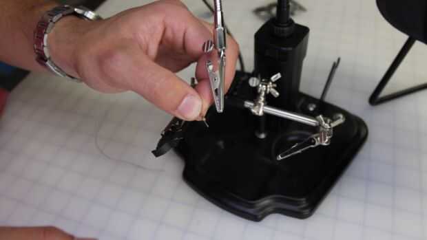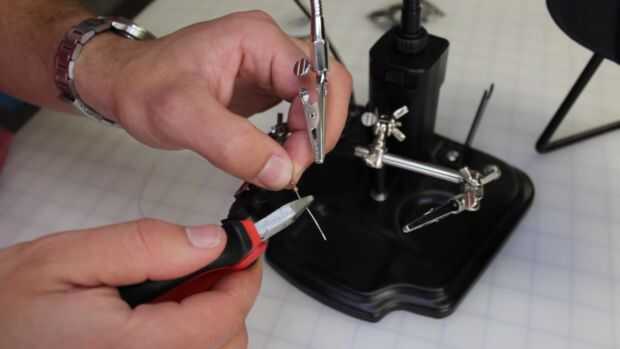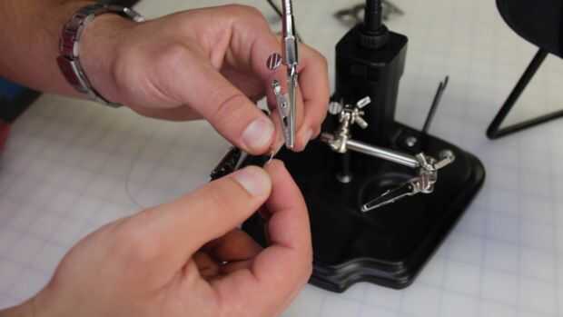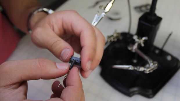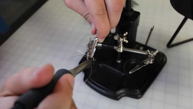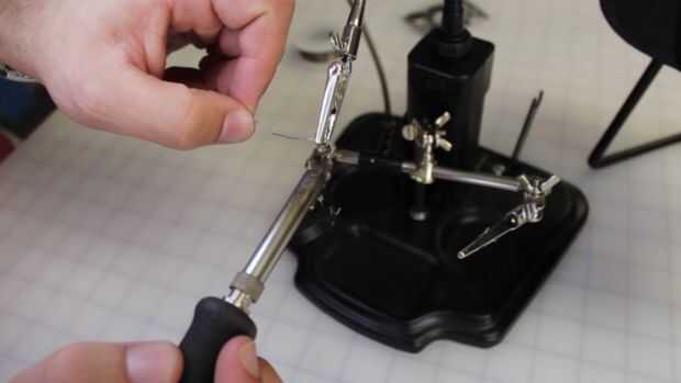 Tomar la resistencia y cortar uno de los cables de hasta 1 cm. Luego doblar en ángulo de 90 grados.