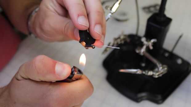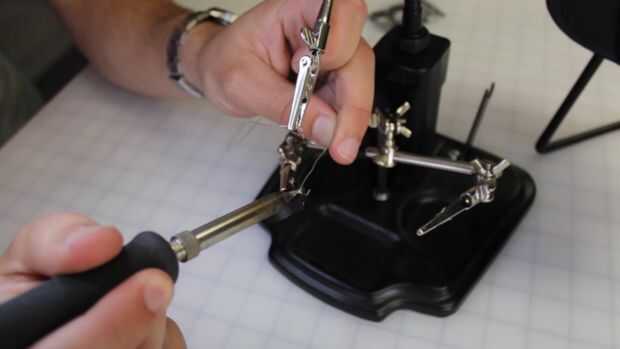 Tanto el medio perno de soporte de la batería y el cable corto de la resistencia de la lata. Luego suelde los dos juntos y cubrir el resistor y el empalme con la tubería del encogimiento del calor.