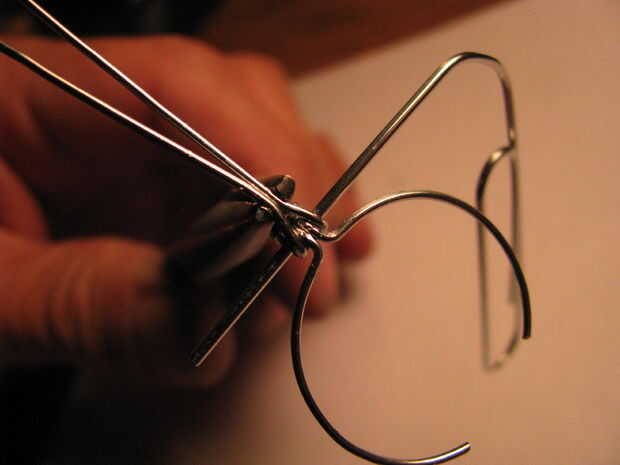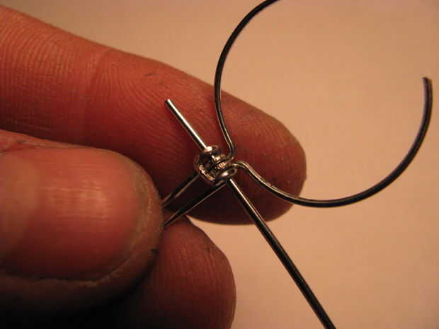 Pellizque los extremos libres juntos y les splay aparte como la otra bisagra. Al igual que el otro lado, la forma los extremos libres en un círculo.
