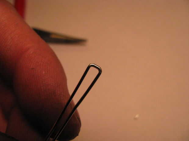 Rollo de la "U" en forma de bucle. La bisagra se reúnen y conectan con el clip de papel más grande. Ajuste como sea necesario para hacer un ajuste apretado.