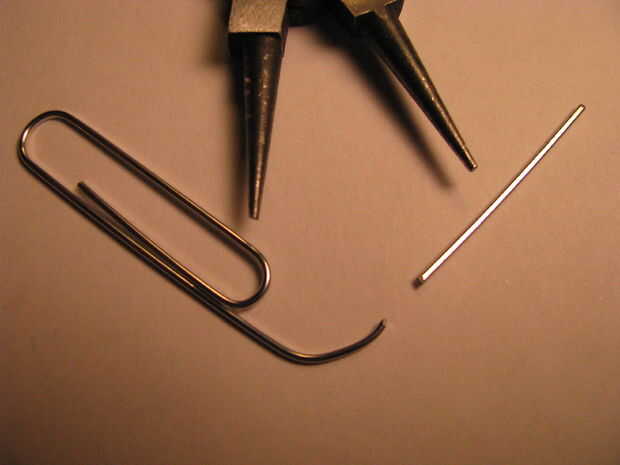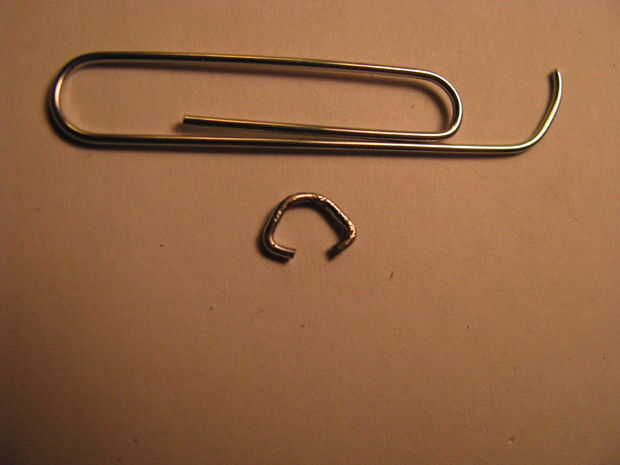 Use una sección del clip de papel más grande para hacer la bisagra perno anillo del salto. Finalmente, la arena a cualquier marca de herramienta y pulir la bisagra.