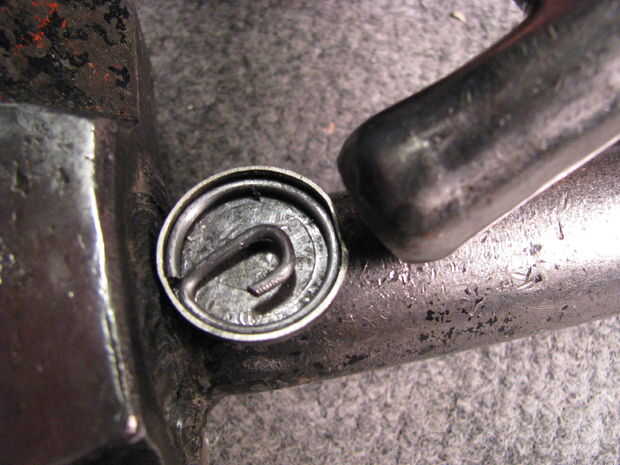 Insertar la forma del cable en la tapa. Utilizan el zócalo utilizado para formar la tapa para aprovechar la forma de. La tapa del extremo en una esquina. Usé mi martillo donde el mango se encuentra con el final del negocio. Martillo el borde de la tapa en un ángulo de 45 grados para que ruede sobre la forma de alambre. Después de que hayas hecho la vuelta, sacar la forma de alambre. Tomará un poco de fuerza.