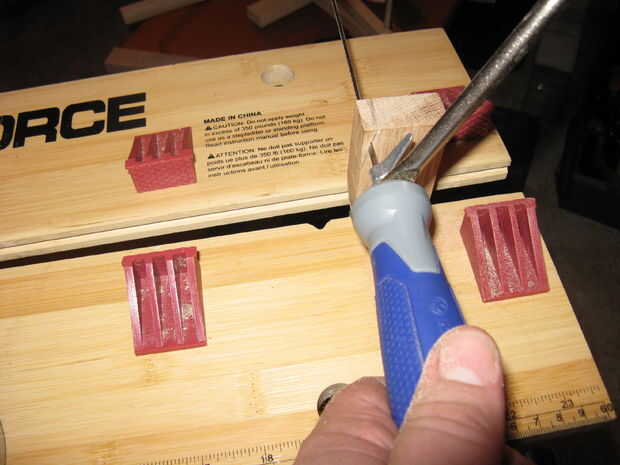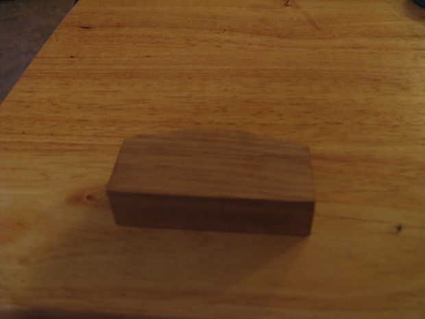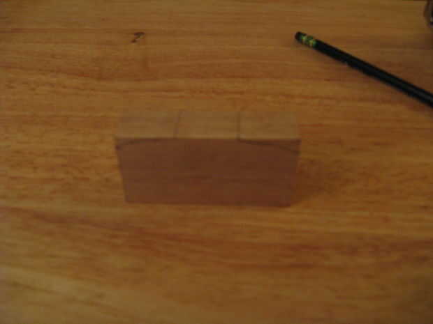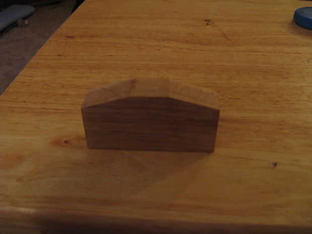 Haga una marca en 1" y 2" en la parte superior y otra marca en 1 1/2" en ambos lados entonces conecte los puntos.  Este debe ser 1/2" hacia abajo desde el borde superior.  Cortar con una sierra de marquetería y luego suavizar con un afeitado habló.  Este paso no es esencial su sólo cosmético pero vea bien.