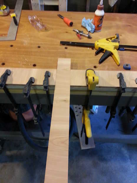 Luego use mi trineo a referencia de donde debe ir el inserto. He aplicado pegamento y siguió el mismo proceso que hice para la fijación de la base. El inserto no se pega, sólo inserta para la alineación. Esta sujeta a mi banco para seguiría siendo plana. Asegúrese de que en un borde de la madera contrachapada de 1/2 no la 3/4" madera contrachapada de la proyección