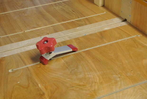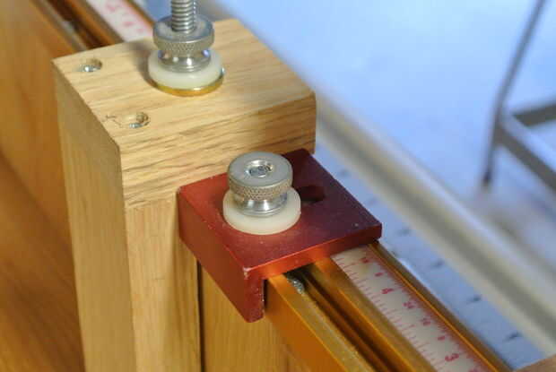 También se puede ver la sujeción de la abrazadera que monta a caballo en las pistas T corté. Ahora no hay ninguna razón para poner mis manos cerca de la cuchilla.
