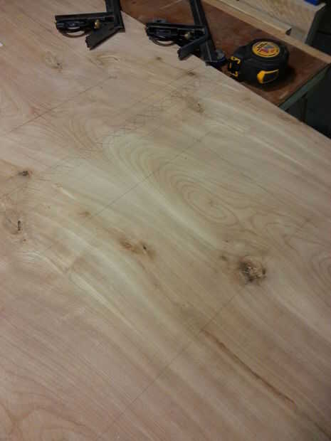 1. la posición de la corte de la lámina máxima. Basado en mi línea inicial en la Sierra de mesa, mide 3/4" a la derecha para tener en cuenta la anchura máxima (utilizable) de mi pila dado. Tengo un eje de inclinación de izquierda. Asegúrese de que saber la dirección de su eje se inclina antes de hacer tu diseño por lo que su corte es correcto.