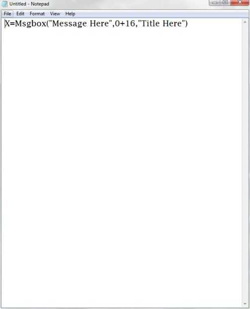 Este es un fácil paso tres bricolaje broma es divertido hacerlo y rápido.Paso 1: Hacer el mensaje Abrir Bloc de notas (sistema operativo de Window)Escriba en el siguiente(Esto es % 100 inofensivo)Answer=MsgBox("",16) (entre las comillas escribe