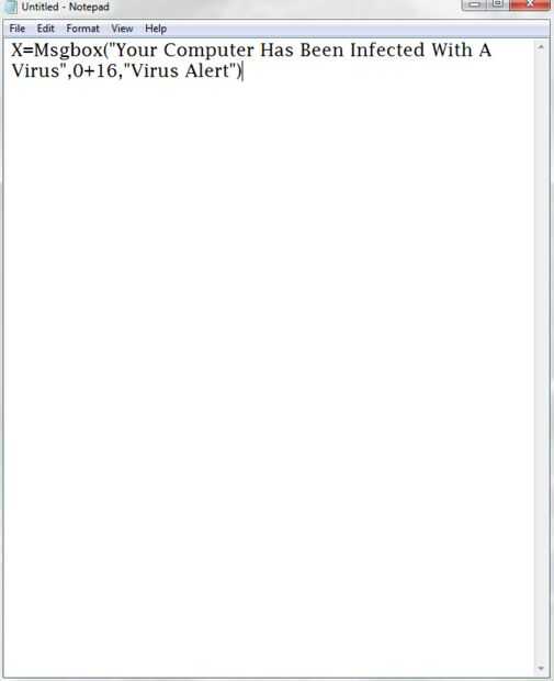 Un virus falso, disfrazando como un anti virus...Paso 1: Hacer el programa... Abrir Bloc de notasEscriba (o copiar) este código:deecho.echo.Eco Animus Anti-Virus Portable (C)echo % hora % % fecha %Eco registrado 6.8.3.837Eco control % cd % para el vi