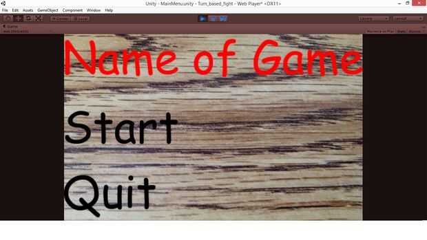 Título del juego, botón de arranque, cierre botón con fuentes personalizadas.