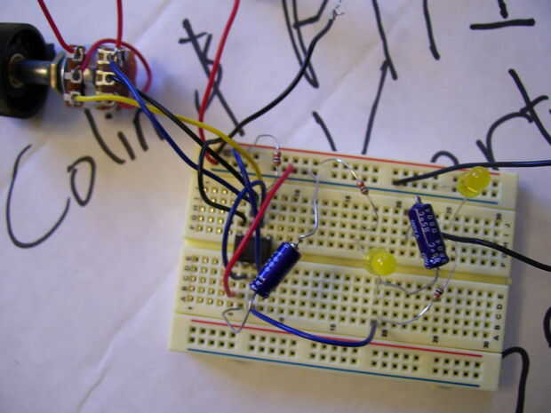 Básicamente, sólo tienes que seguir la imagen de abajo para poner el circuito en el protoboard y el alambre para arriba! Usted puede Agregar en el interruptor en los + 9v de entrada o salida del suelo. Utilicé tierra. Asegúrese de obtener la polaridad los condensadores y los LEDs derecha! Si no funciona, verifique las conexiones y asegúrese que el LED y el bote y todas las piezas de trabajo. Si se enciende y no funciona, apáguela y no Asegúrese de que ninguna parte caliente. Si alguna, usted puede han frito les con un corto o poniéndolos en hacia atrás. Si utilizas la olla estérea, revisa el diagrama de cableado para por debajo.