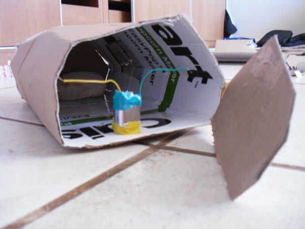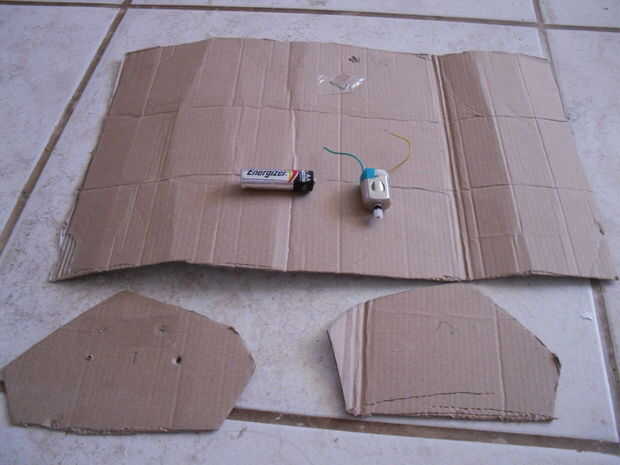 Conexión: Doblar los bordes a 90 grados. Pegue las piezas A y B juntos. Luego la cinta la parte C sobre B y D en la parte inferior de B. opcional: también puede cortar ranuras rectangulares en la parte posterior enfrente del motor y en la parte inferior. Si usted empuja la pieza de la conexión a través de las ranuras, se mantienen mejor.