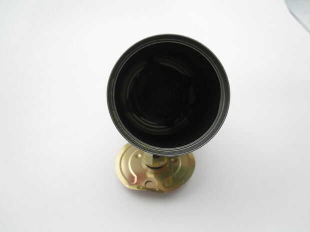 Asegúrese de que la parte de piezo (blanco) del elemento hacia arriba y centrado en la parte plana de la can. Cuando esto se hace, mantener el elemento en su lugar mientras pegando un trozo de cinta adhesiva por encima de él. Utilice el objeto contundente para asegurarse de que la cinta es manteniendo el elemento de forma segura y no hay ningún espacio entre la can y el elemento.