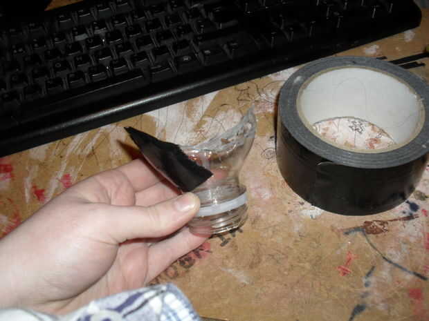 Necesita ahora forma la parte que sostendrá la cabeza del micrófono de auge al polo... Entonces rápidamente cubrí este parte en cinta porque yo bolver encontrar mi pintura en aerosol