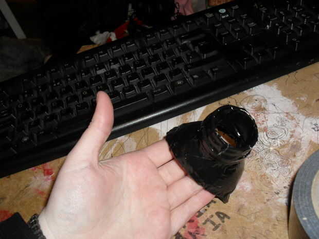 Me deslicé mi conducto cinta hombro parte hacia abajo sobre la piel y pegado cerca... También he añadido un montón de pegamento hacia abajo de los lados (entre el polo y la pieza 'hombro')