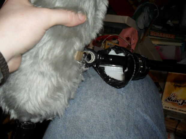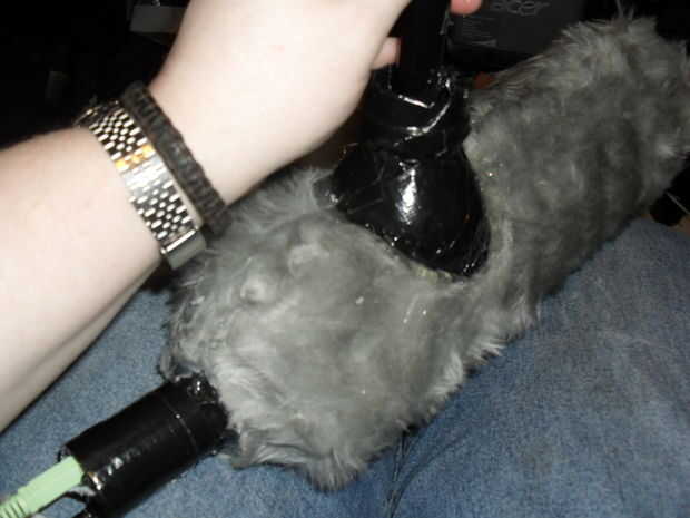 Porque yo estaba usando un accesorio de la línea de paños... Tuve toglue la parte superior hacia abajo con un trozo pequeño de cartón para la estabilidad como pegar algo que se redondea a algo que es peludo no es particularmente fácil... pero estoy seguro de que usted trabajará