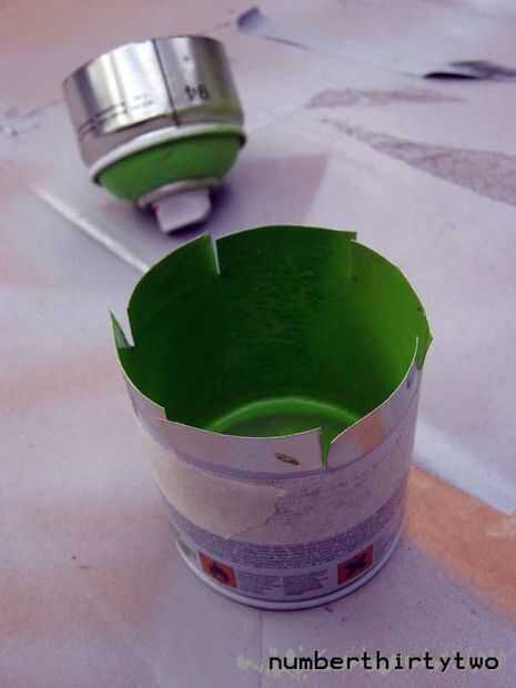 Ponga la mitad superior de la lata en lugar seguro y marcar una nueva línea en la parte inferior la mitad sobre 15 bramido de mm el corte que acaba de terminar.