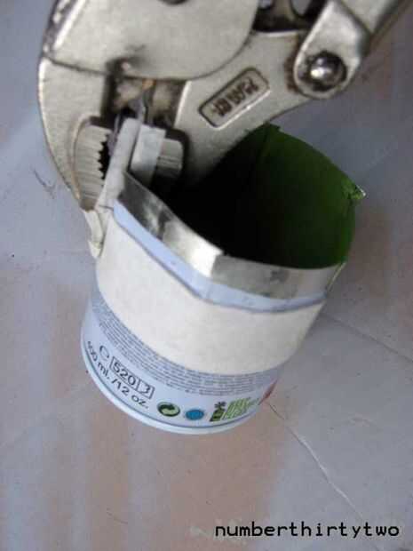 usando tus puños topo modificado comenzar siguiendo la línea que marcaste, prensar un canto agradable en la lata. usted tendrá que dar la vuelta unas cuantas veces y no flexionando un poco y coloca con los dedos, pero pronto comenzará a formar una cavidad perfecta para la mitad superior de la lata para sentarse en.