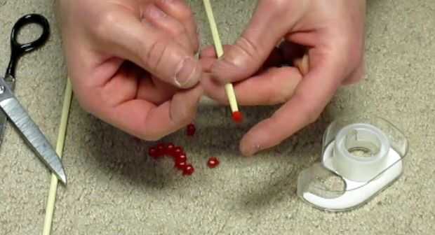A continuación añadir alguna cinta a ambos extremos del arco pero deje aproximadamente una pulgada de los palillos que muestra.