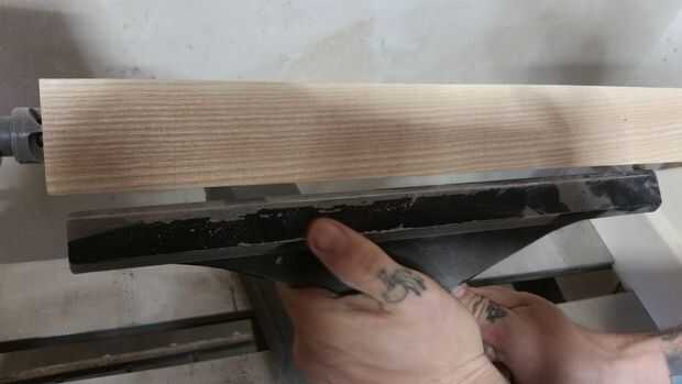 --Mover el soporte de la herramienta que es tan cerca de la madera como sea posible, pero no toque mientras rota la madera.