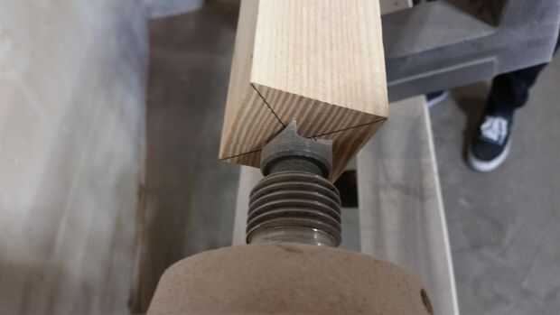 --Mover a la acción de la cola para que la distancia entre la acción de la cola frente y Huso huso chuck es ligeramente mayor que la longitud de la madera.