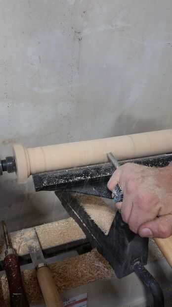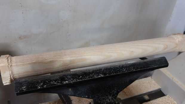 --Continuar corte áspero su pedazo de madera hasta que todo el deseado longitud de su palo/mazo es cilíndrica.