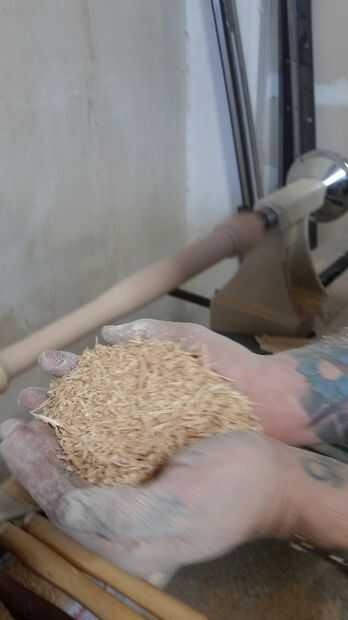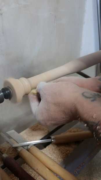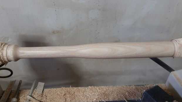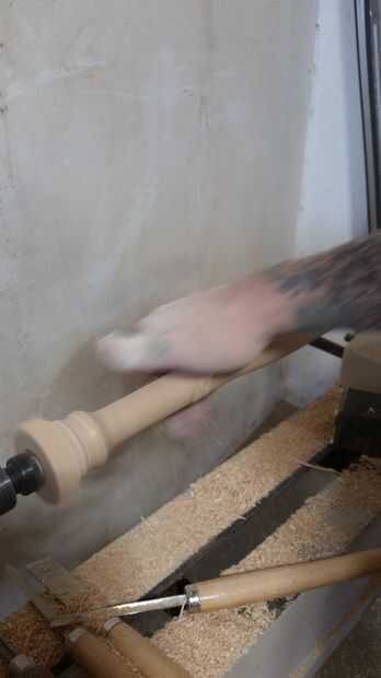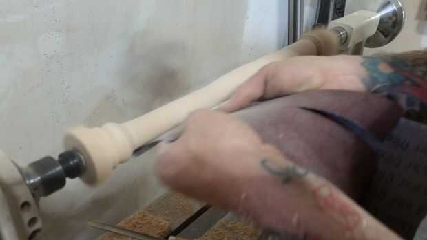--Utilice su lija de bajas (80 en nuestro caso) para pulir la superficie del palo y apretar las curvas y la consistencia de diámetro.