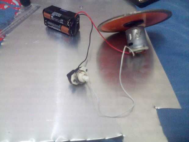 El motor puede conectarse muy fácilmente, sólo por conectar los dos cables a una batería con un interruptor en el medio (la nota la imagen es un clip de batería de 6 voltios, pero se puede subir a 12 voltios para que sea mucho más rápido), esto significa una vez que el interruptor está encendido y el motor comenzará a spinning y así se la arma , entonces el otro interruptor puede ser encendido para el receptor y esto permitirá que la rueda para poder girar usando el transmisor.
