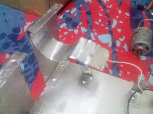 ¿Para la última parte, usted necesita conectar una pieza de 10 x 4cm de aluminio cortado y la forma para que encaje alrededor del motor, con algo de espacio al final, tipo de como la forma de un? Esto permite que la pieza curva que conecta en la parte superior de la [pieza de aluminio forma permitiendo también espacio suficiente para el motor (puede ser pronto en la foto 3 y 4)