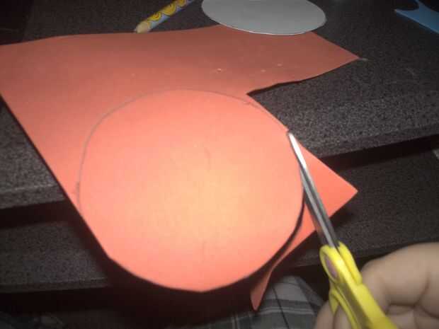 Trace el círculo de la caja de cereal en un pedazo de hule espuma rojo luego recórtalo.