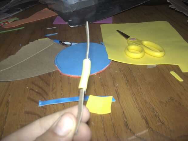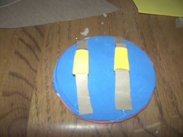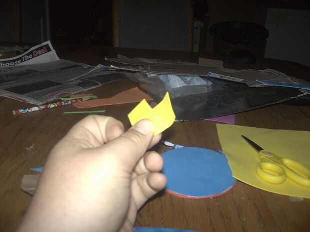 -cortar las dos piezas de espuma amarilla que pasará alrededor de los pedazos de marrón (ver fotos) luego el pegamento entonces en cómo desea.