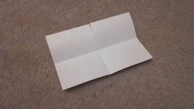 Por último, permite poner las tijeras a utilizar. Corte a lo largo del pliegue vertical en el centro del papel. No, repito, No lo corte a lo largo del borde del papel que está abierto. Corte en la parte cerrada del papel. sí, ya sé, que suena confuso. Basta con mirar la foto de referencia.